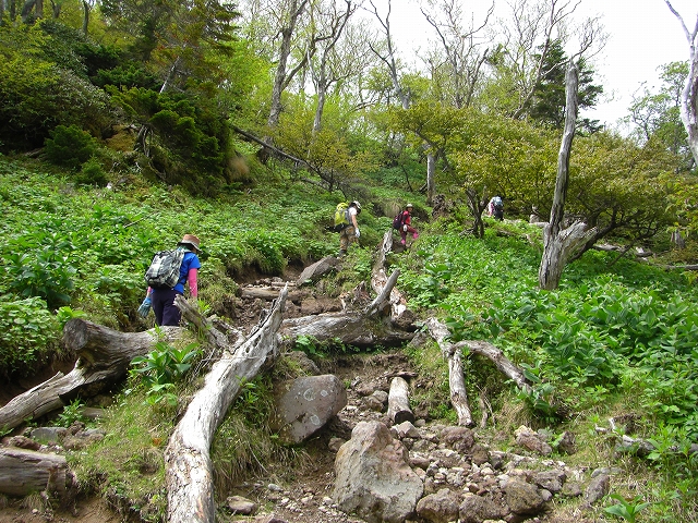 山頂に近づくに連れ徐々に険しくなる道も、前回の武尊山を踏破した我々の敵ではありません。